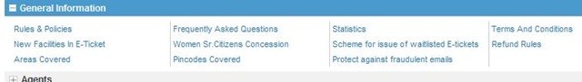 General infoThe third section takes care of information available about the various services offered by Railways, frequently asked questions like sections and also the various new announcements will get their places through here only.
