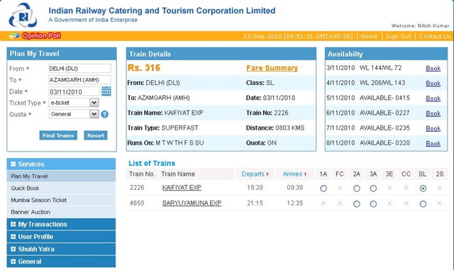 internal1Once you login into the site, you get introduced with a brand new interface that is much more convenient and super efficient to use. The most awesome part come, when we go for searching a train and booking a ticket, but we will come over that part at end. Lets see what more it offers.