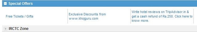 IRCTC Zone IRCTC Zone seems to the advertisement zone kind of thing. Various packages like Shubh Yatra etc get their mentions here.