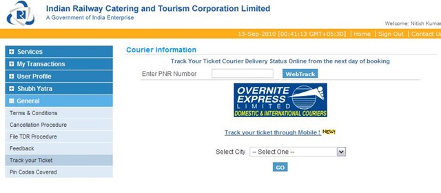 pin codeYou also find cool new features like track your ticket that integrate the tracking system of the official courier partner Overnite Express Courier Limited of Indian Railways. Its applicable for people, who book i-tickets that get delivered to you by courier (though I really doubt if many make use of this option ever).