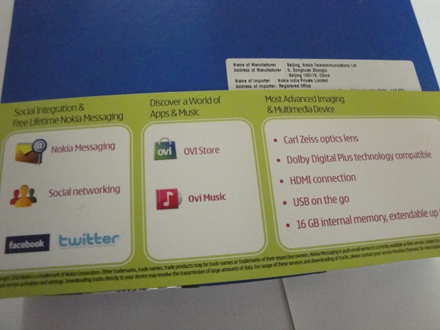 Hardly taking much of the space, the box also speaks in same minimalistic language as the design language of Nokia N8-00 is. (I missed my Nokia N82 box at the moment, I was taking snaps). Though if I remember right, then only Nokia N97 mini’s packaging was somewhat similar thickness, but that was much bigger than this.