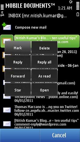 Not that much large support as Nokia Messaging: Many of we bloggers might be having Google Apps accounts that is useless with Mobile Documents free version as of now because it just doesn’t support POP accounts as of now. Same would be for business users and Hotmail/ MSN users too. Nokia Messaging still free with largest support. May be after beta phase, things will change.