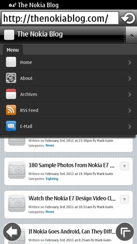 What we see here in browser screenshot is a simple interface rather than going through a rather different approach than Desktop ones, who always had an address bar on top, while Nokia decided to go on own by keeping the same at below. Didn’t work well.