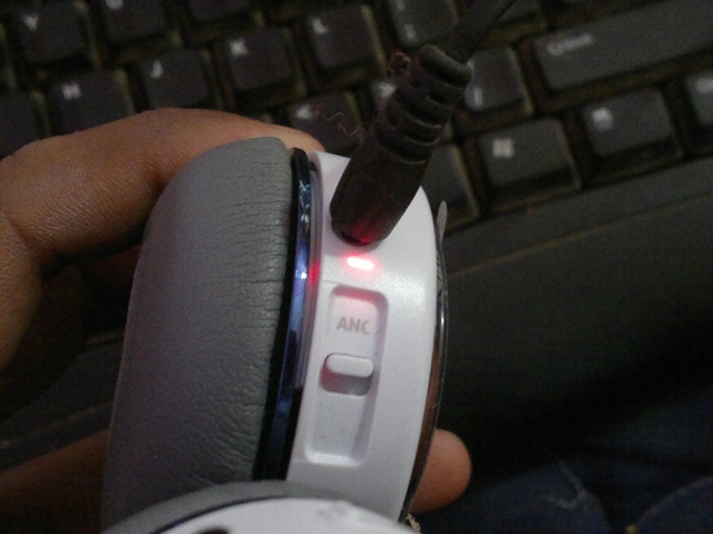 In the above picture, you can spot the headphones and also ANC [helps you suppress background noise] switch, Volume rocker, The jack and LED which goes green, blue and red indicating the current status.