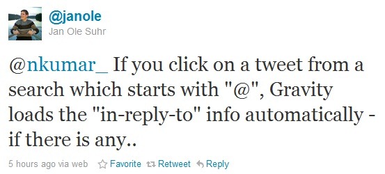 Note: Still there is no support for typing/ posting longer tweets from Gravity but as I mentioned once from @nkumar_ .. this is something that is already implemented in backend, but UI not written yet, so could make it to public anytime.