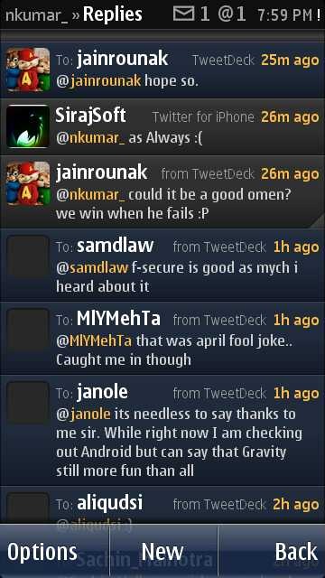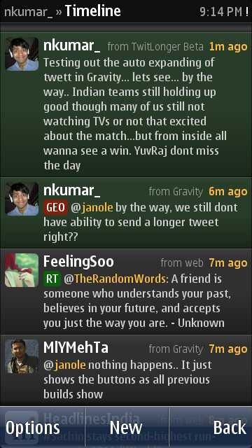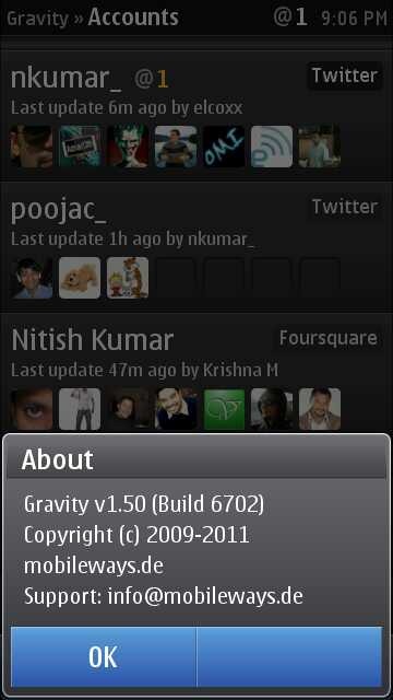 For people new to Gravity (Is there any?), I am sure it will be worth reading The big review of the biggest symbian twitter client and if you want to get connected to me then I am always there on @nkumar_