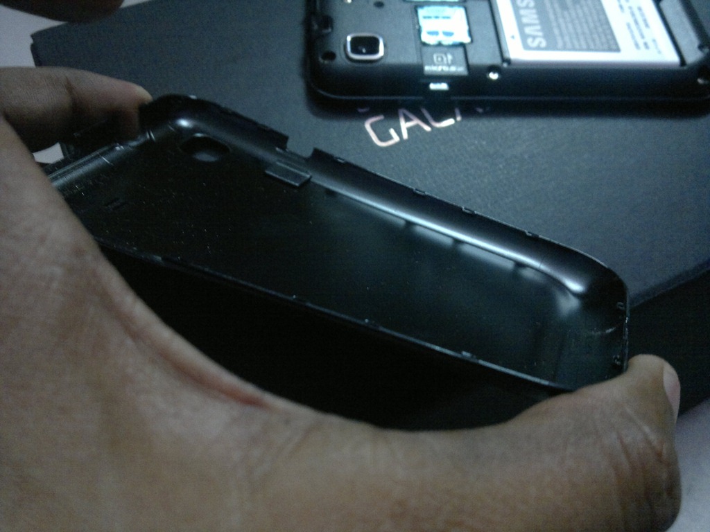 When you open the cover then you find the usual SIM slot and MicroSD slot inside. Though none of them are under the battery but still somewhere I think that the Samsung Hardware designing team didn’t wanted to include the hot swapping of SIMs. You can definitely insert a SIM while battery on but can’t pull out a SIM from there as you can see from the pics given below …