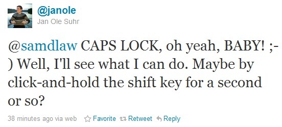You can see the shift key getting auto pressed when you start the tweet or put a space after ".". Simple but effective logic for most of the scenarios. I still think that permanent caps lock can be implemented easily in Android’s way by double tap on shift key and then could be shown as a little blue dot on the shift key (three bitmaps for shift key than two as of now). Am I right @janole ?