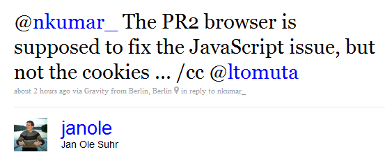 It becomes more bigger, when you come to know the fact that the inbuilt Gravity browser that @janole implemented sometimes back, not gonna get the cookies support even after Symbian PR2.0 a.k.a. Anna.