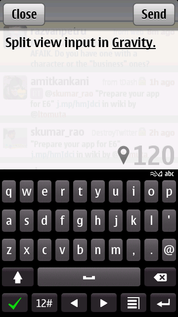 If you use the twitter heavily and open the web links as well then you obviously know that how big this is, considering the state of default Symbian browser as of now. Now, Gravity just passes the link to Opera and one can continue browsing his timeline. Moreover, new links if opened, get opened in new tab without disturbing the old opened one. … making full use of Symbian Multi-tasking..