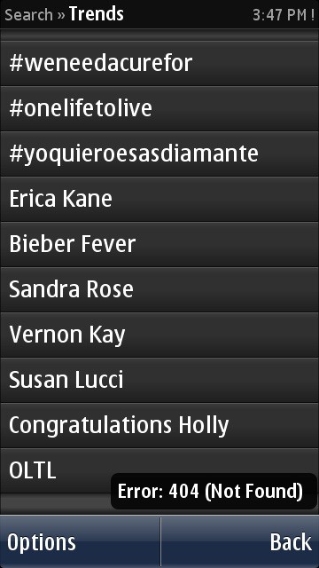 Though I myself didn’t got the same, but some users were reporting Trends related bug (Error: 404) in Gravity recently. Hopefully fixed now (for S60 V3 as well).