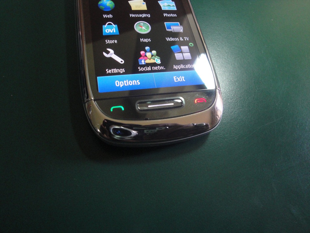 Watch out the above picture, this is something new that is different from top of Symbian^3 devices. The mid range Symbian^3 devices like C7-00 or C6-01 are blessed with green call and red call end keys in addition to traditional one button approach. May be casual users might miss it, but heavy users gonna love the hardware buttons a lot. Note that these buttons are not the touch button, but actually have the haptic feedback. Nicely built.