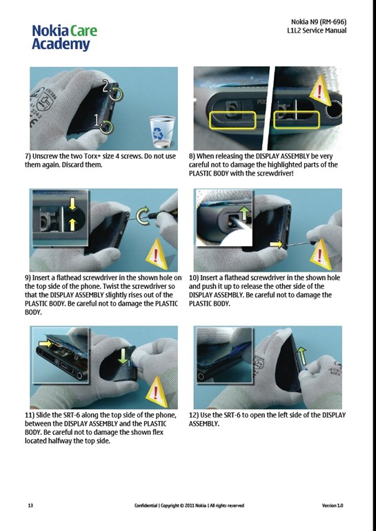 If still you have not got the idea that from where a Nokia N9 could be opened in service center, then let me hint you, the top place and then display is the key.