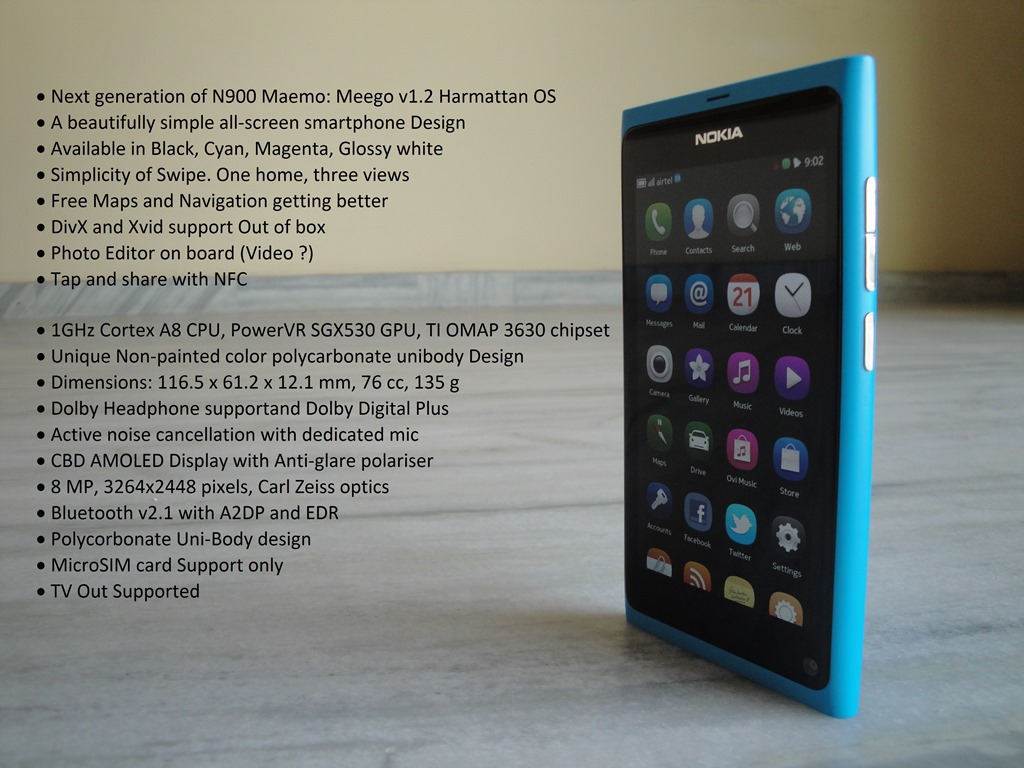 Let’s visit the highlights of Nokia N9 specs sheet: