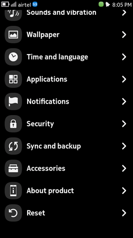 A screenshot Gallery of various settings inside Nokia N9