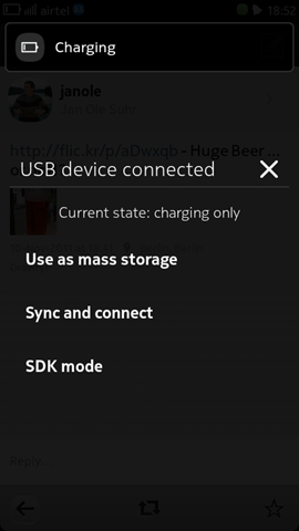 Though there is some catch. I couldn’t test it so can’t confirm if the root ID is restricted now after PR1.1, moreover, USB mode can be used only if Nokia Network Bridge in installed in your PC. Unfortunately, Network Bridge seems not available as a separate installation and included in Qt SDK only.