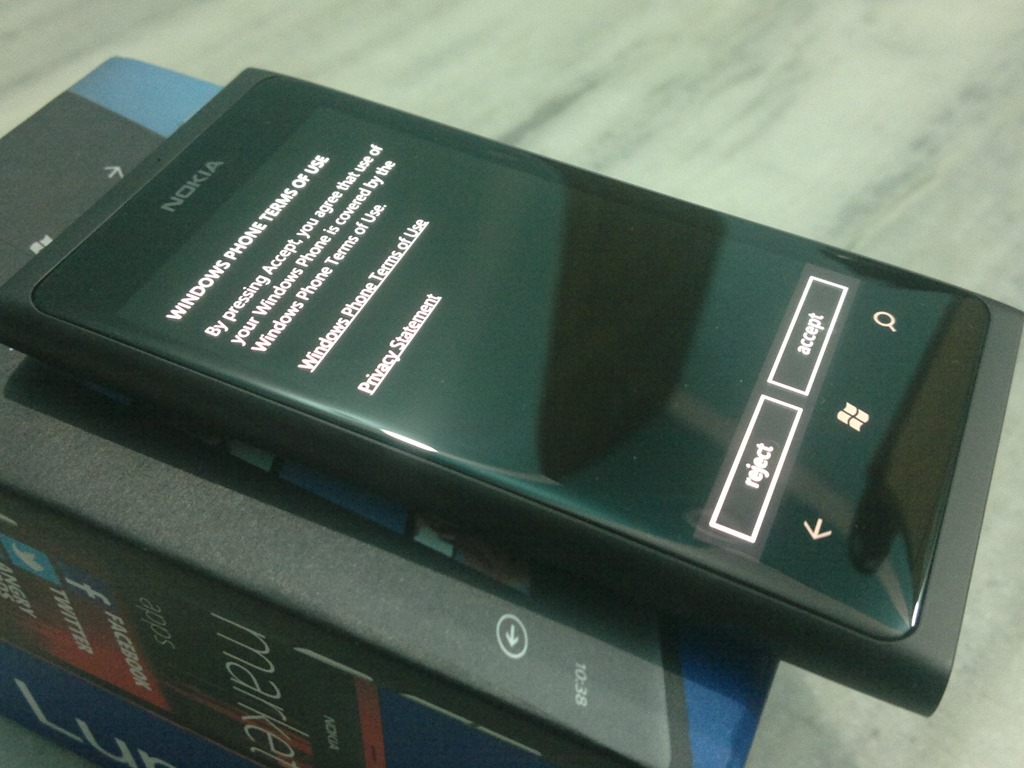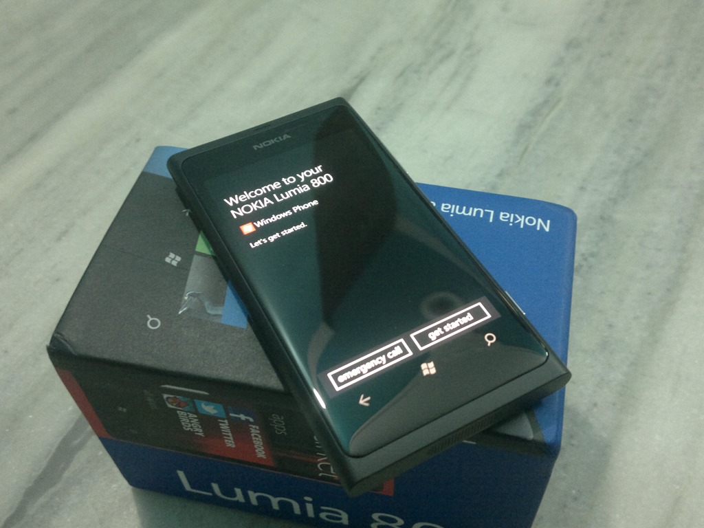 Apart from the essential Windows specific buttons at middle of bottom, Nokia Lumia 800 looked like a typical Nokia, simple and elegant, but considering this was a Windows phone, I was wondering that if I gonna see the famous joining hands video while switching on the device.