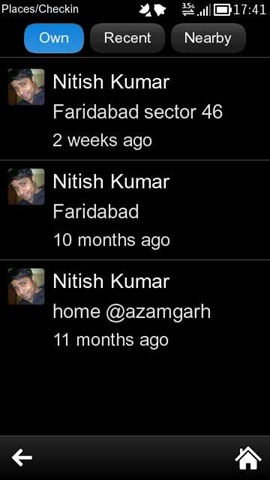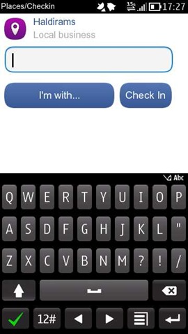 You can search for nearby places (if available as Facebook places) and check-in with multiple people selected with you. Though I found it strange to see that there is no map snipset along with place like we see in Gravity or other apps (Reason: fMobi is relying over Facebook APIs only and not taking account of Nokia Maps/Google Maps APIs I guess). Not a big deal but would have been nice to see that how fMobi presents maps with its Qt interface.