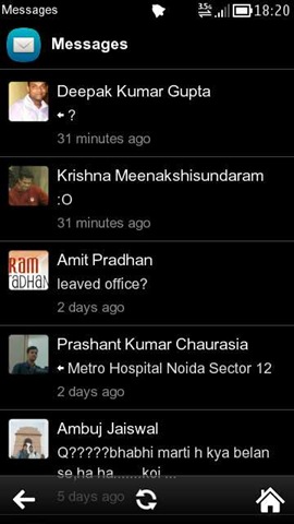 Don’t know why fMobi chooses a different display style for messages than they did with Chat screen. No smiley etc, not exactly that kind of split bar nor the bubbles\colors for the messages. But apart from these visuals, fMobi would be one of those clients who does it right way, when it comes to utilizing Facebook APIs for messages. The delivery is accurate and real time rather than being based on some email based mechanism as some other apps follow.