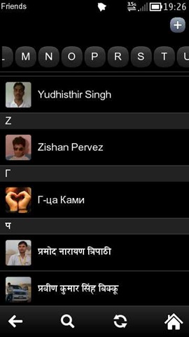 Check out the top bar with the alphabets, these side scrolling alphabets are not random, but are made up of first letter of your friends names. Means selecting any of the alphabet will bring you a list of all the names starting with that alphabet.
