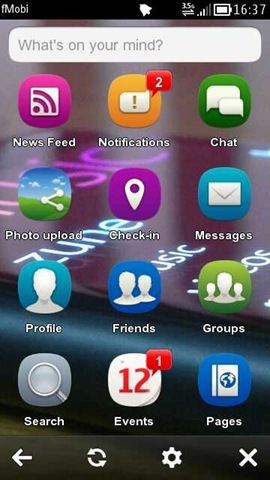 For a second, opening the fMobi give you the feeling like you would have opened an application folder on your Symbian^3 phone as you see lots of rounded icons (like Symbian icons are since Symbian Anna). Also like Nokia Belle handsets, you find a wallpaper behind the icons as well (not by default actually but you can set it via settings). Also you still can see the notification bar and even pull the same down for checking out any new notification, just like you would do in any application folder.