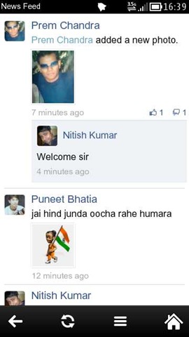 The UI always feels speedy with kinetic scroll and you see the feeds here with picture/video previews and inline likes/comments (just like Facebook shows them).