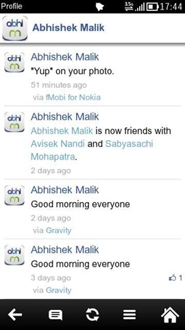 The keywords are innovation and consistency which makes fMobi always one step up ahead of the competition. fMobi chooses a different UI and mannerism than the official apps and yet delivers an experience that brings you best of Facebook activities. Being in latest Qt, its smoothness/animations in various actions, native split screen integration and its own way to notification will sure please any Symbian user.