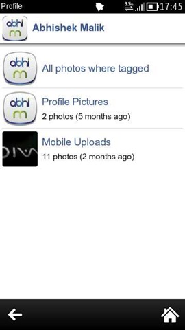 With the latest fMobi, you find a cleaner display for the user profile, where all the fields seems to be part of one single page rather than looking like individual entries. You can access the public albums of individuals and would be amazed to see the animated way via which the thumbnails appear.