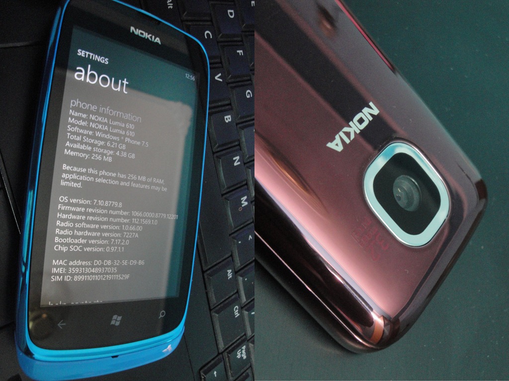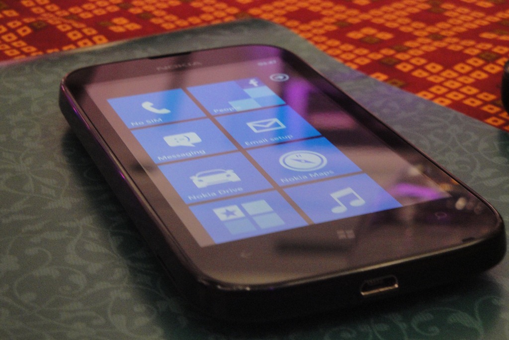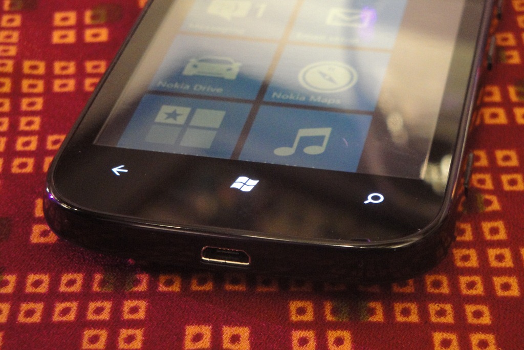 The top of the device doesn’t has the usual MicroUSB slot because that has been moved to the bottom. No front camera obviously and I am not sure about the sensors though I expect it to be the same as Nokia Lumia 610.
