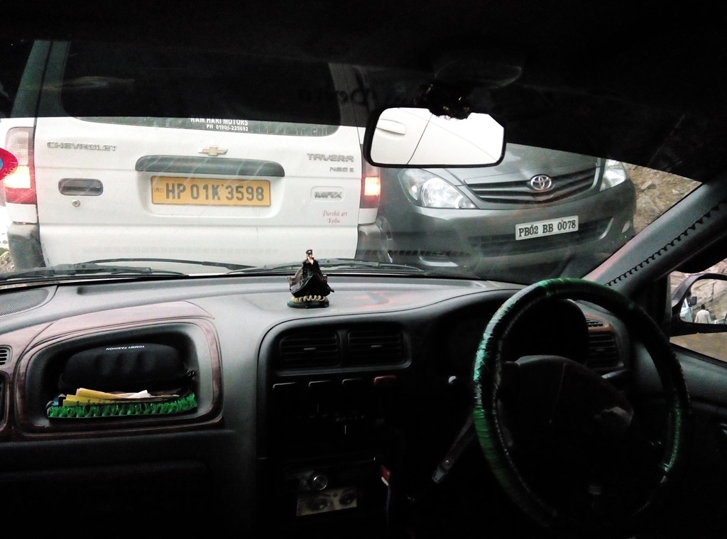 After an hour or so, we moved. Apparently our cab driver was waiting for certain trucks & bigger vehicles to pass through first and then figuring out his ways. Once those trucks were past, he started cutting his ways from narrow space left by vehicle on that narrow road. We realized that real trouble wasn’t the climbing but the part when we drive back in the rush which was sure to be continued till late evening. Though once we passed through the clot near Rani Nallah, it became easier to drive down.