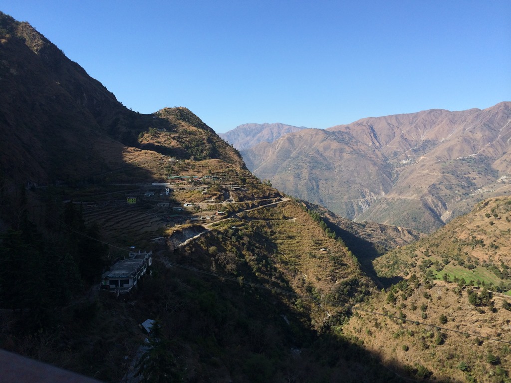 The drive back to Mussorie felt much more scenic than the drive to Kempty fall. One of the reason was, we had enough of time in our hands to enjoy the beauty on the roads and in hills. Structures suddenly going down and up as we drove up or down, the clear blue sky and hills behind them. It was all what one would have wanted to draw a painting sort of.