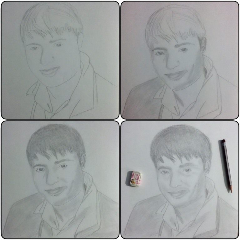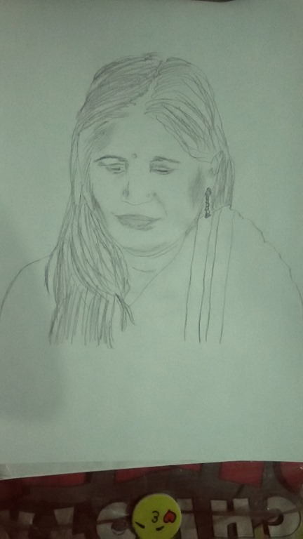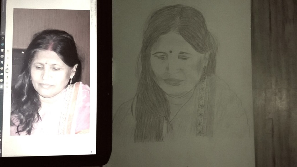 Next was the attempt over portrait of mom and yet again, I messed up over hairs. Not that worse as was in case of own sketch but it was sure better half way in comparison to the shape it ended up in the end.