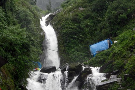 It had started raining when we headed towards Bhagsunag waterfall which was roughly less than 1km trek. During seasons, it looks like Kempty fall a little but right now, it had only handful of water. Giving a Googled image to give an idea that how it should look like during seasons.