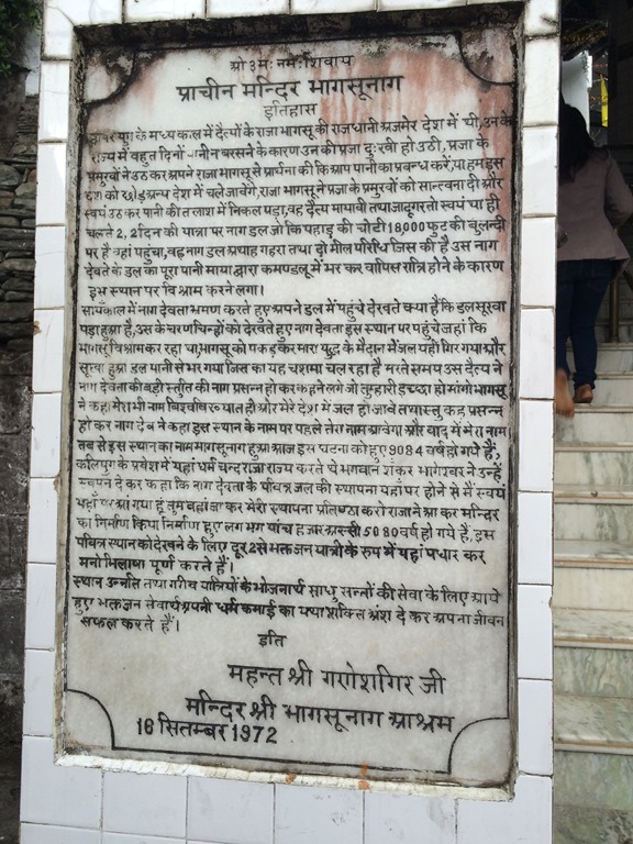 Though snow peaks weren’t visible from the place, but fortunately the parking was placed at a very exotic location from where entire valley was visible. I believe this must be a busy spot during peak season for people to take their pictures. We would have stayed to the place till 1210 hrs around before heading to Bhagsunag temple and waterfall.