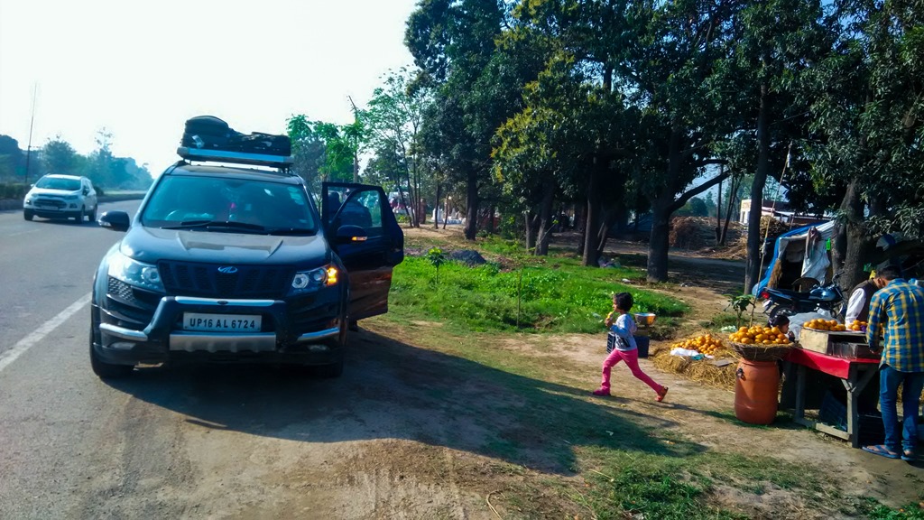 We started the drive by 1830 hrs with THE blunder. We placed the luggage on top, placed a polythene wrap over it and then used rope to tie all. Blunder was not to tie each luggage individually, which later ended up in what I had written in start of the post. We lost a big bag having saris and cloths of kids just on the border of Delhi.