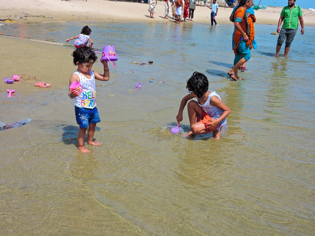 Finally this was the day for which kids been waiting for. Sand castles on sea beach, but they had to wait little more as elders needed to visit Rameshwaram temple. No photos as cameras were not allowed in temples. We woke up early, taken bath, did Manidarshan, but going for “22 Kund snan” was kind of tough with kids around so we chosen the short route. By some 8.15 AM, we would have been free to drive again after checking out from hotel.