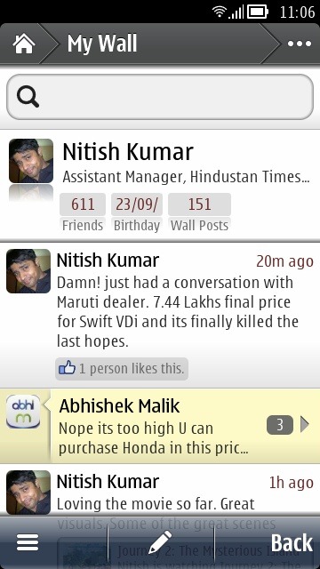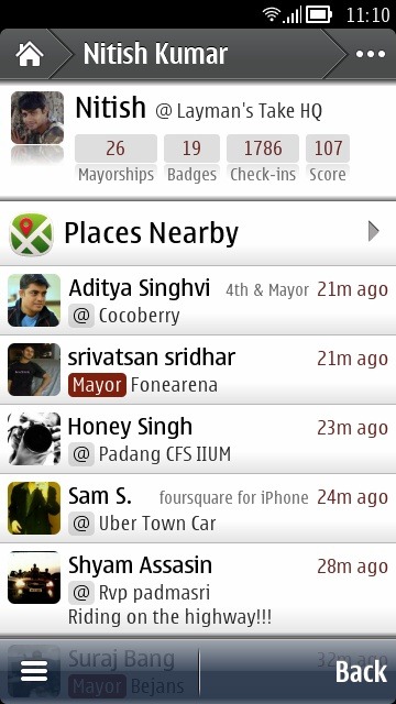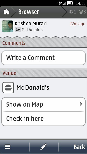 9. Facelift in Foursquare section, comments notifications: Not much significant, but the foursquare section also have got some minor changes in the way a check-in looks or in the way you search for a place.
