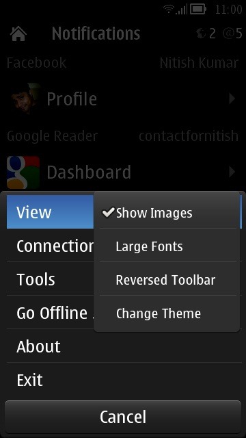 10. New share menu in Gravity: Though as of now, it works only for the links in Browser, Facebook and Google reader section, but finally we have a share menu in Gravity that serves the purpose of saving articles/web pages from one social network to another.