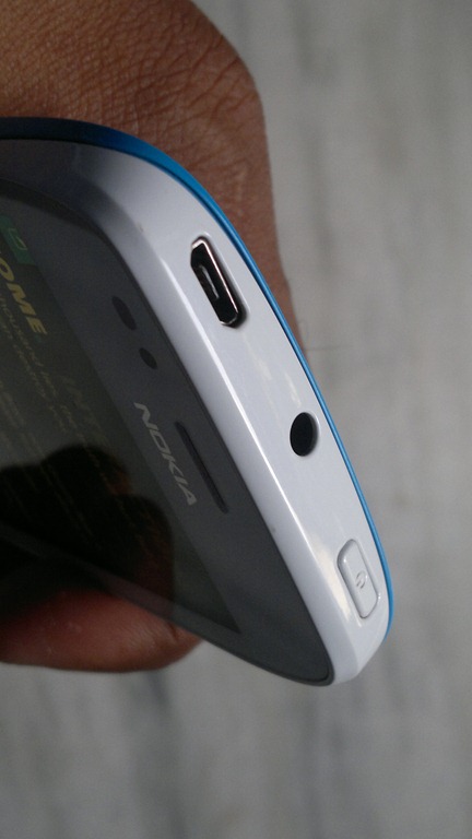 The bottom of the phone has slot for hook while the top hosts an unprotected MicroUSB port, a 3.5mm Audio Jack and one power key. All traditional design, no fancy sliders like Nokia Lumia 800 and as usual, I would thank Nokia for not giving a plasticky or rubber cap over MicroUSB port.