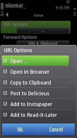 10. New share menu in Gravity: Though as of now, it works only for the links in Browser, Facebook and Google reader section, but finally we have a share menu in Gravity that serves the purpose of saving articles/web pages from one social network to another.